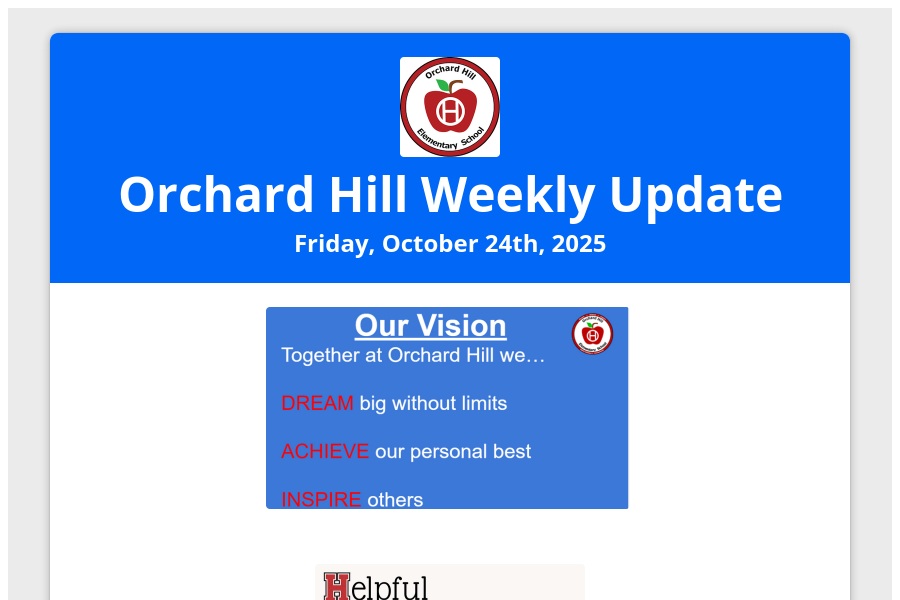 Together at Orchard Hill we…DREAM big without limits, ACHIEVE our personal best, and INSPIRE others.